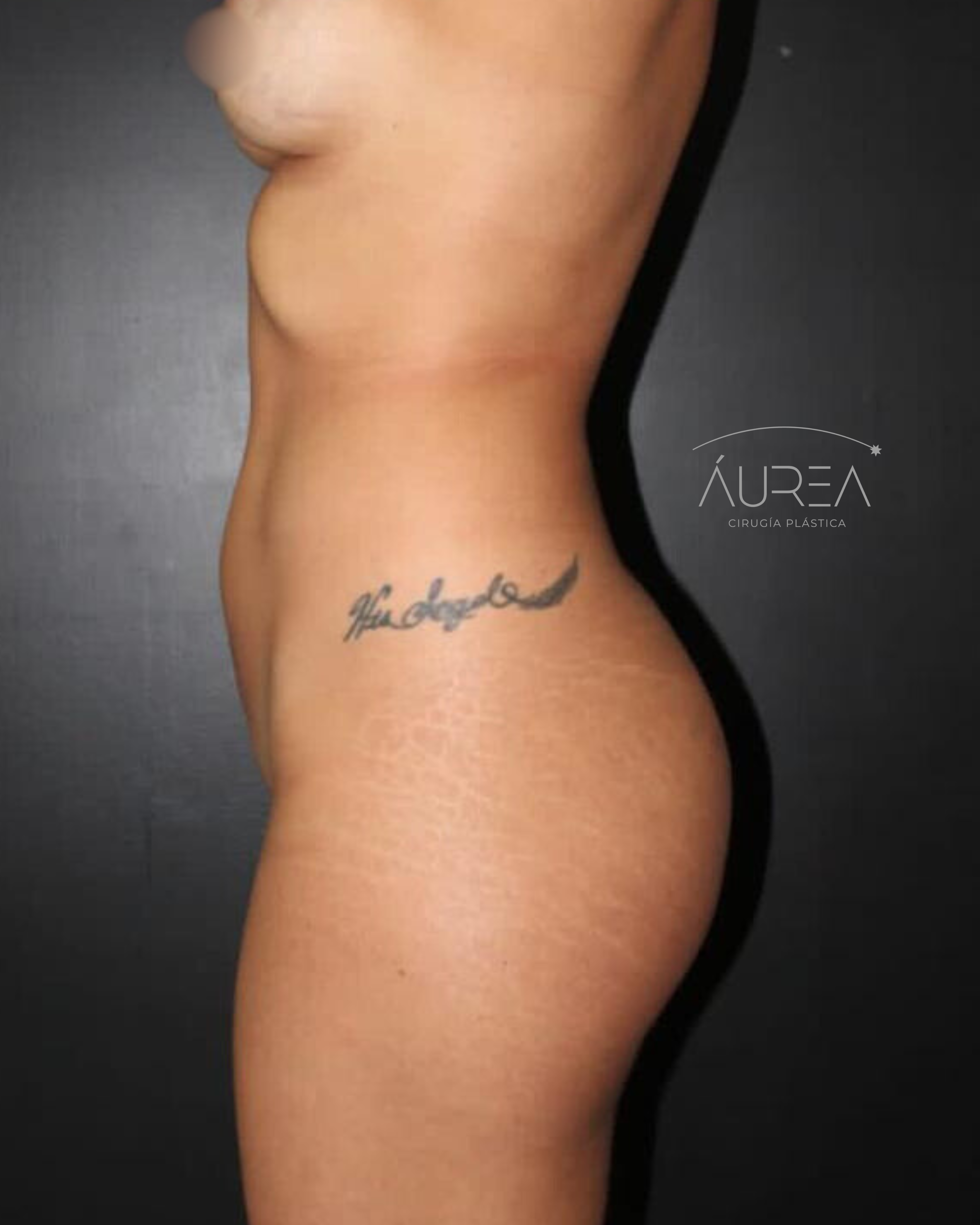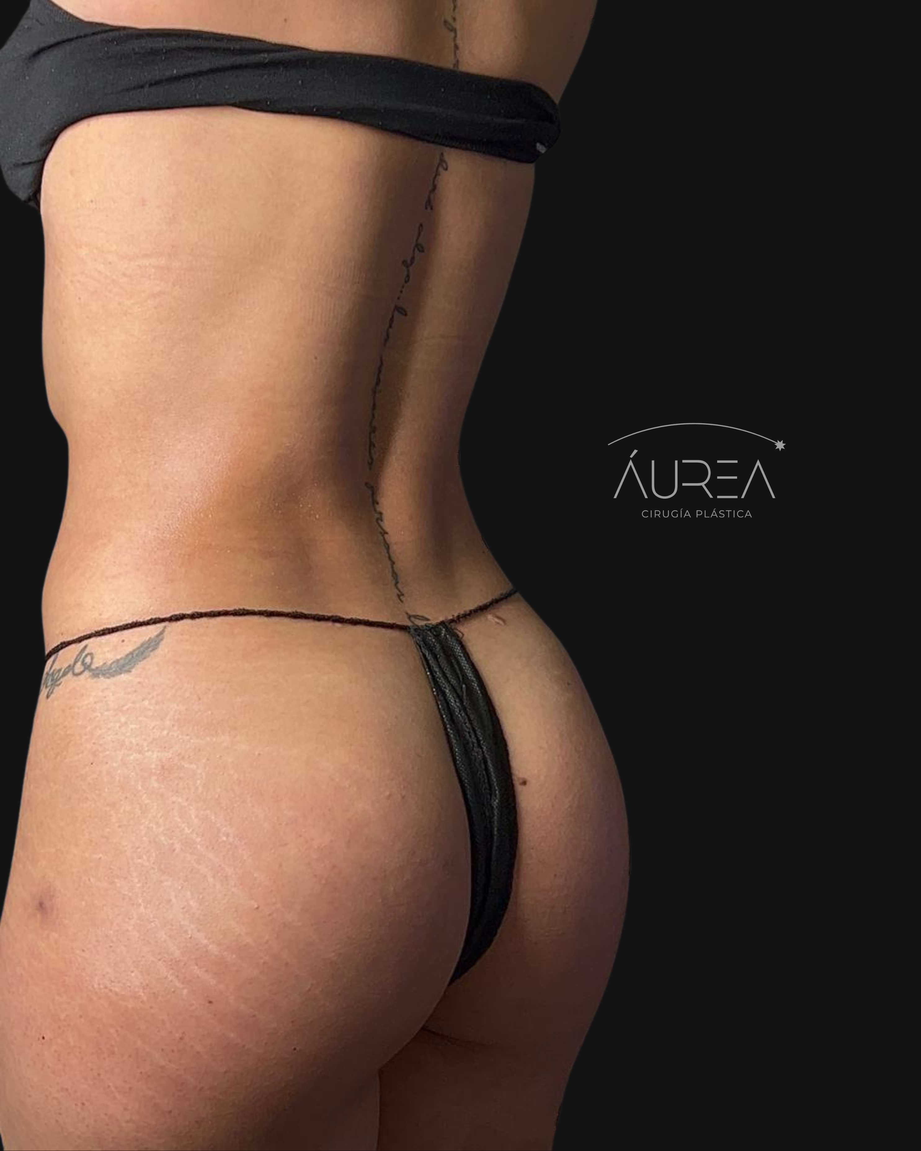 La grasa obtenida fue procesada y colocada de manera estratégica en áreas clave como glúteos y zona de hip dips, mejorando la transición entre cintura, cadera y muslos, y aportando una silueta más continua y armónica.